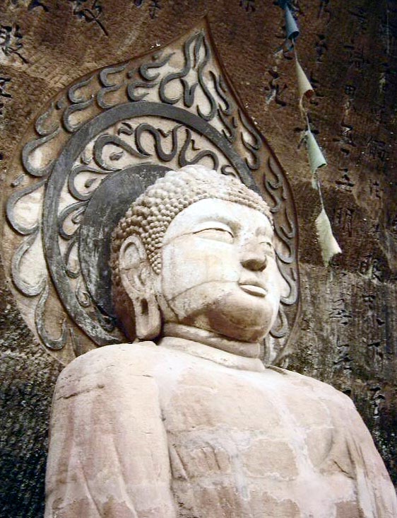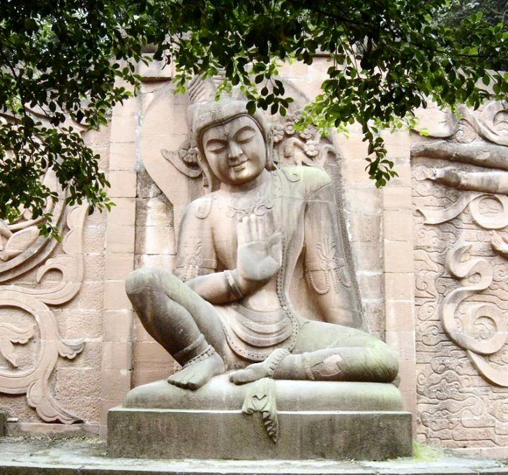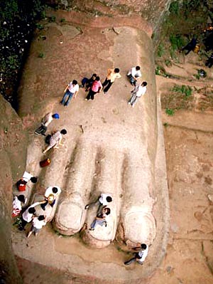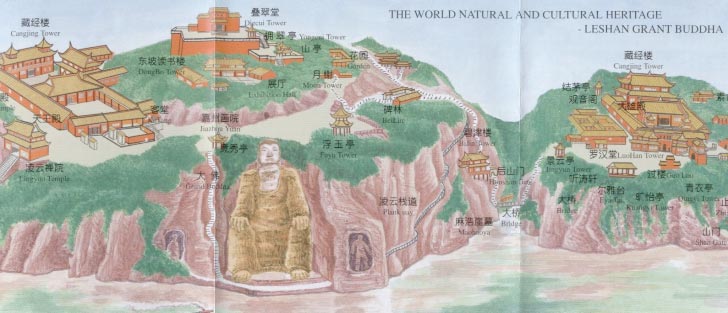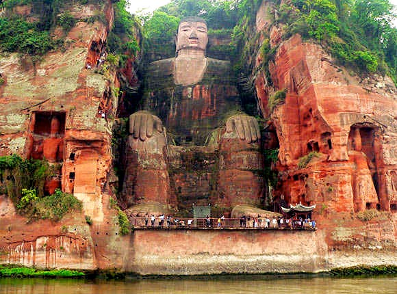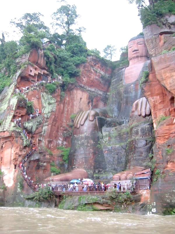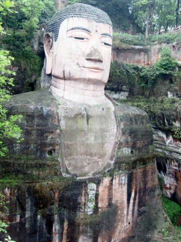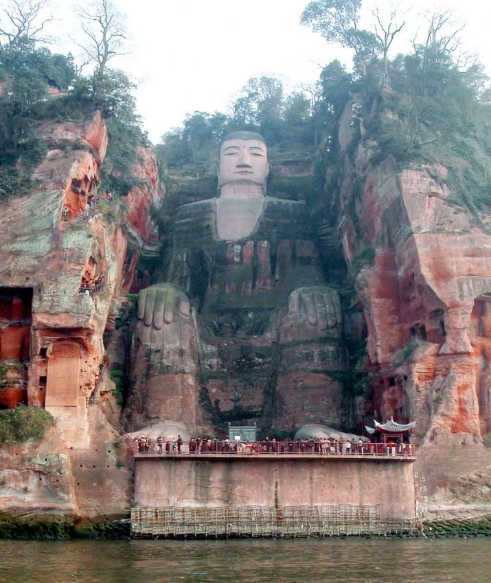 Esta colosal representación de Maitreya (Mile Foi), el Buda mesiánico de la era futura, está tallada en piedra y tiene 71 metros de altura, por lo que es el Buda de piedra más alto y la estatua premoderna de mayor altura del mundo. Fue cincelada entre los años 713 y 803 (dinastía Tang 618–907d.C.) en un precipicio del monte Lingyun cercano a la ciudad de Leshan, donde confluyen los ríos Mín Ji?ng (Minjiang), Dadu y Qingyi, al sur de la provincia de Sichuan.