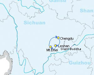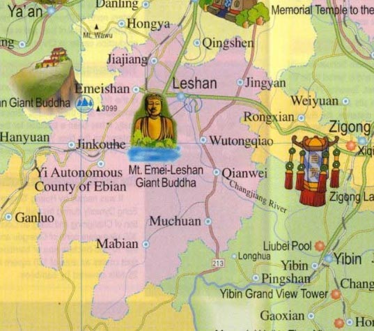 Mapas para situar el Gran Buda de Leshan y Sichuan en China.