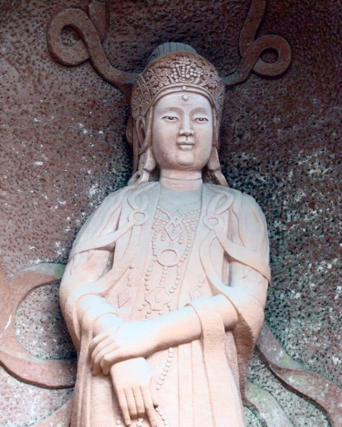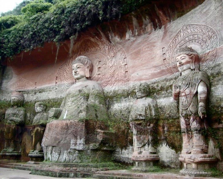 Esculturas y grabados que hay en las paredes laterales del Gran Buda de Leshan.
